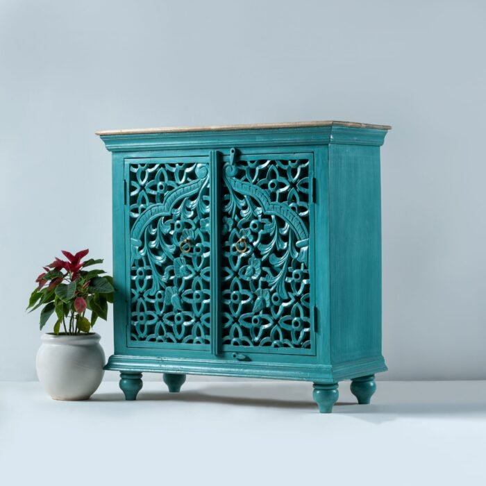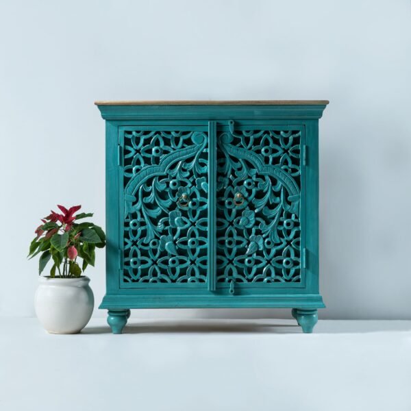 Bone Inlay Black Floral Motifs End Table | Wooden Corner Table
