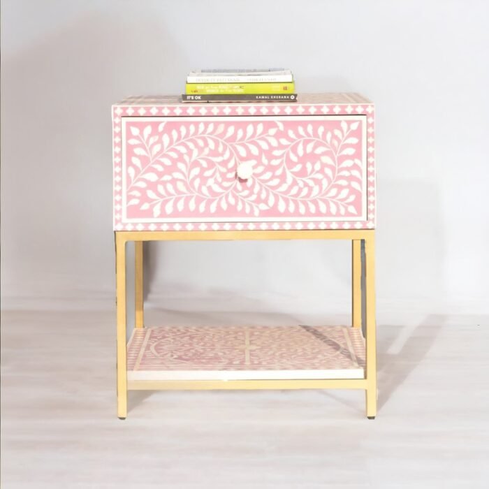 Bone Inlay Pink Floral 1-Drawer Bedside Table
