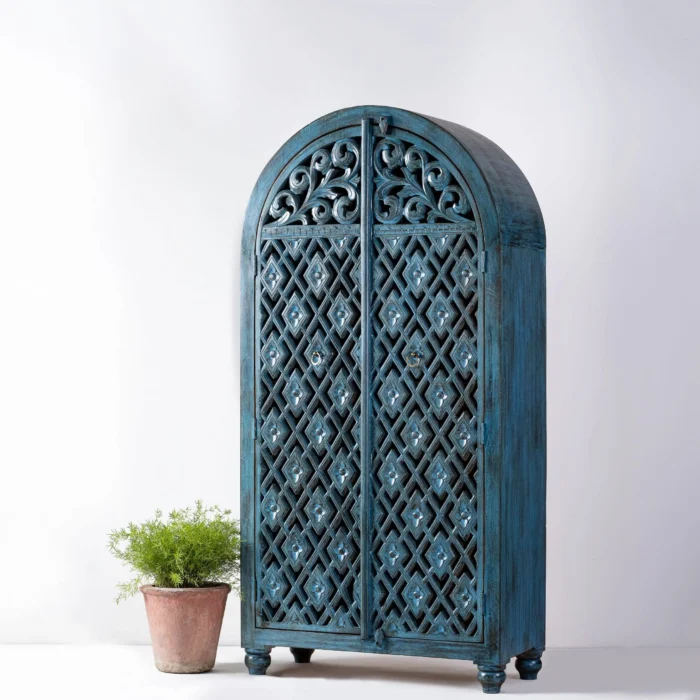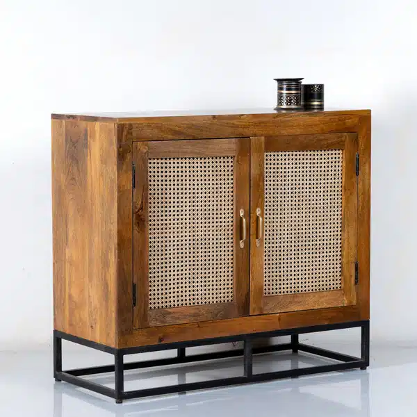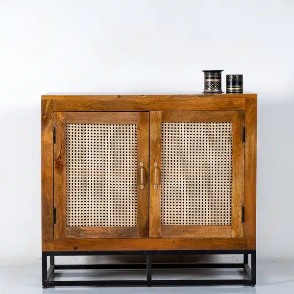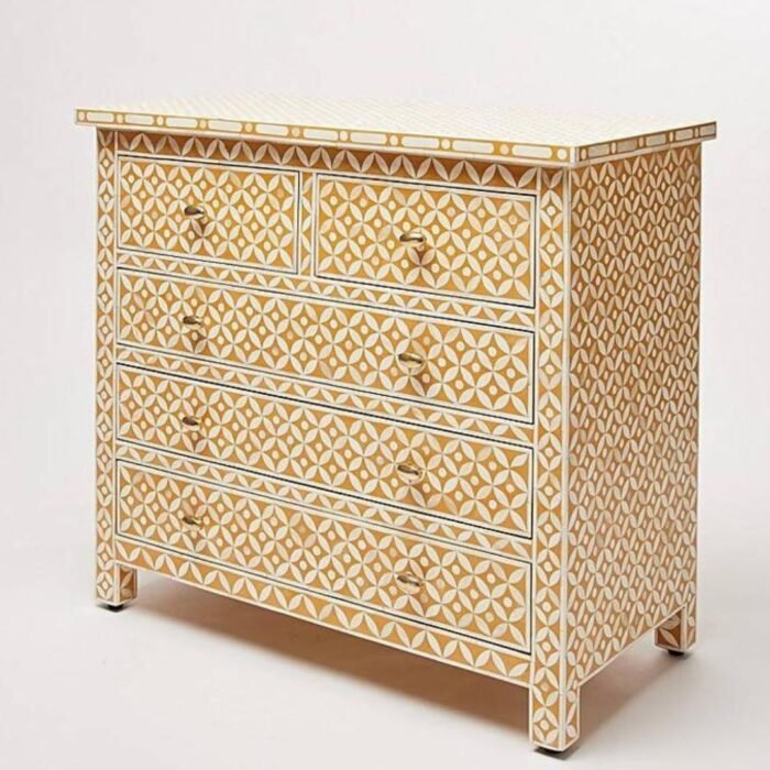 Bone Inlay Geometric Pattern Orange Chest Of Drawers | Handmade Wooden Dresser