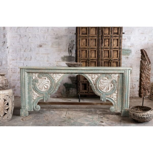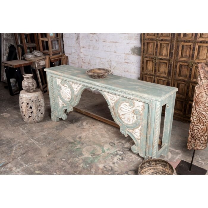 Hand Carved Green Indian Console Table
