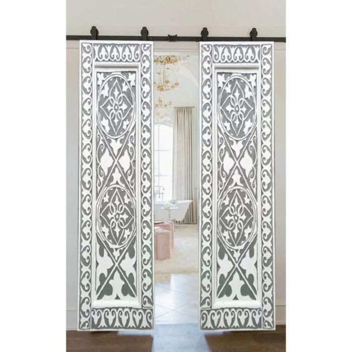 Hand Carved Grey and White Barn Door