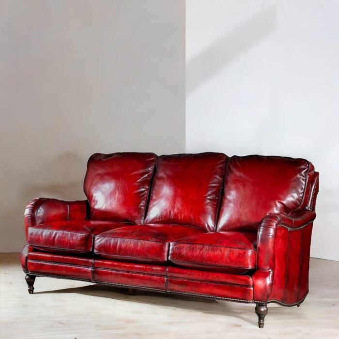 Modern Chateau Cherry Red Leather Sofa