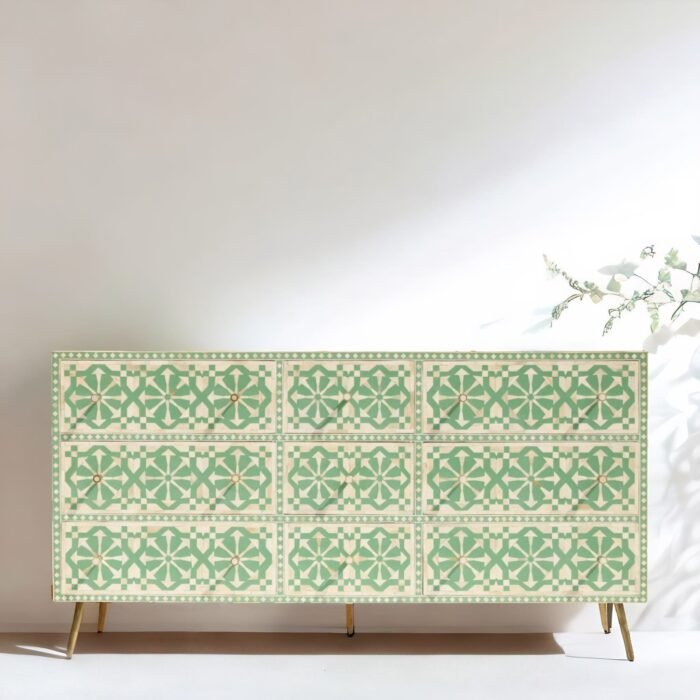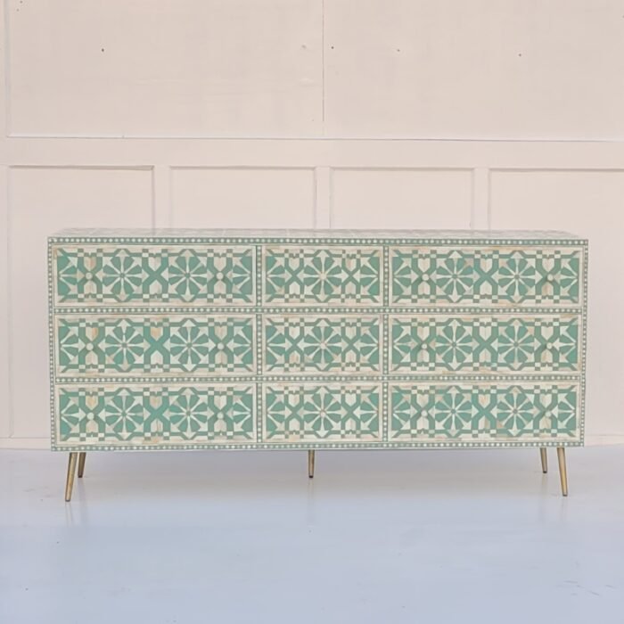 Bone Inlay 9 Drawer Floral Dresser In Green