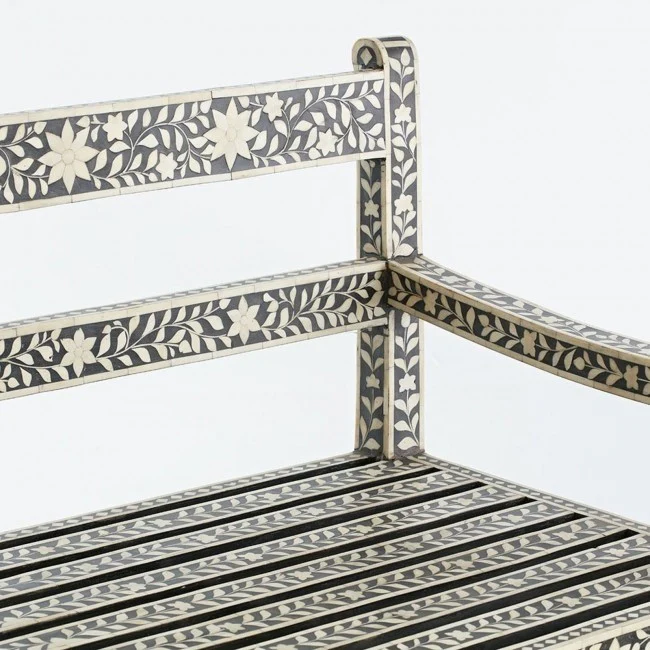 Bone Inlay Black Floral 3 Seater Bench