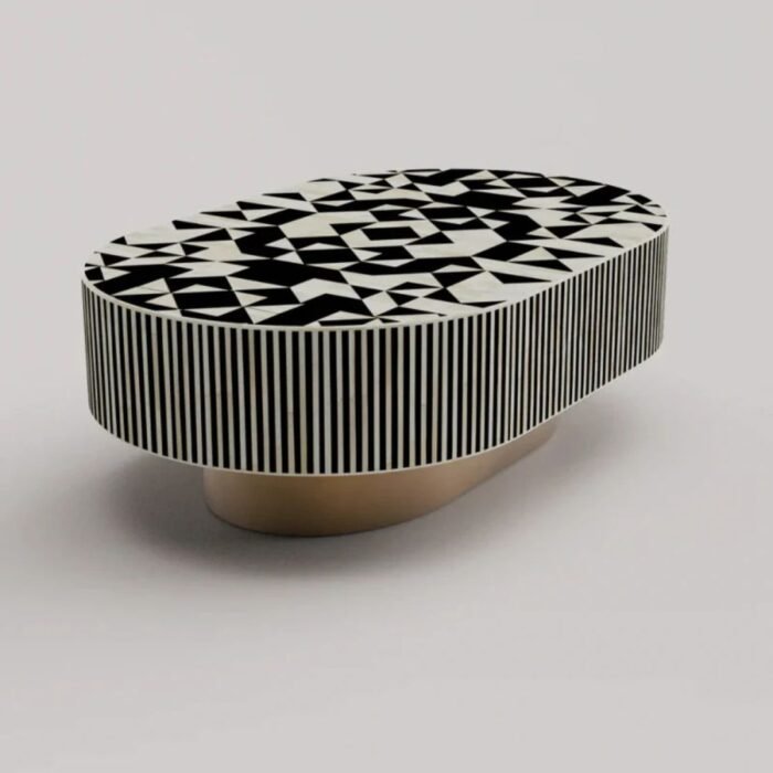 Bone Inlay Striped Pattern Black Oval Coffee Table