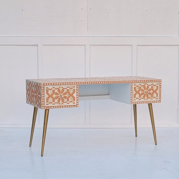 Bone Inlay Orange Abstract Pattern Console Table And Study Table