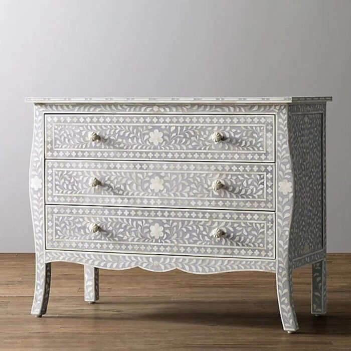 Bone Inlay French Style Floral Chest Of Three Drawers