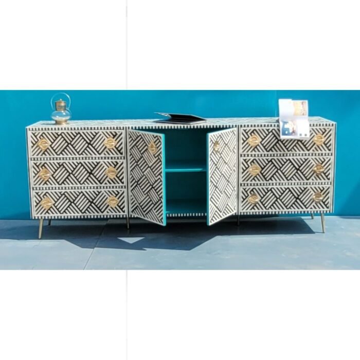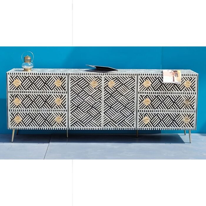 Bone Inlay Abstract Pattern Black Large Sideboard