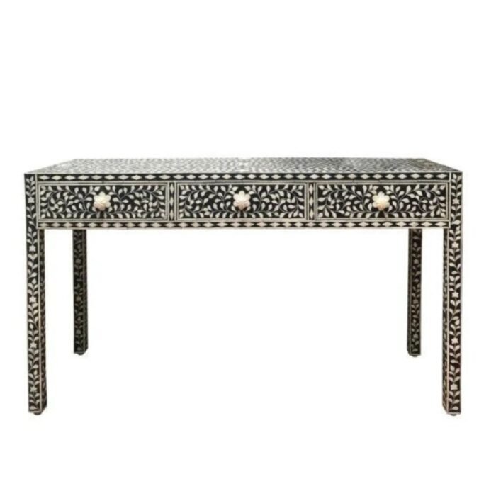 Bone Inlay Floral Black Hallway Console Table With Drawers