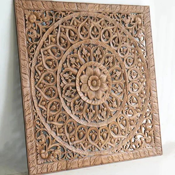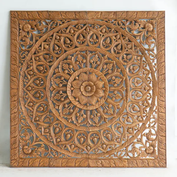 Mandala Hand Carved Wooden Indian Headboard Light Brown