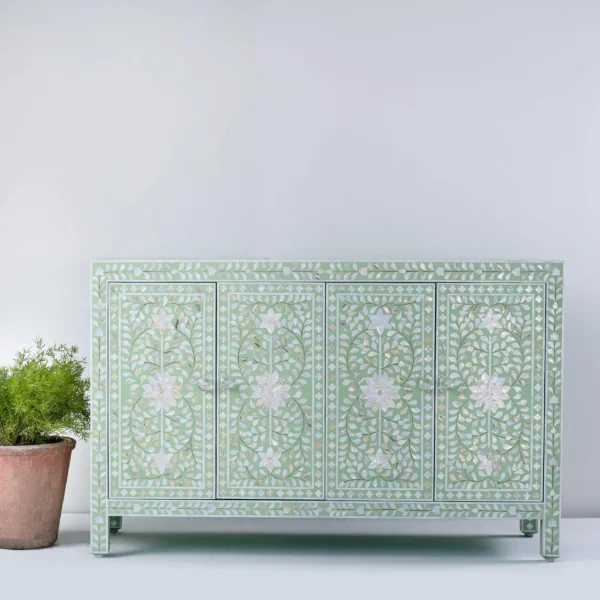 Original price was: $3,200.00.$2,880.00Current price is: $2,880.00.Bone Inlay Floral Pattern Green Sideboard