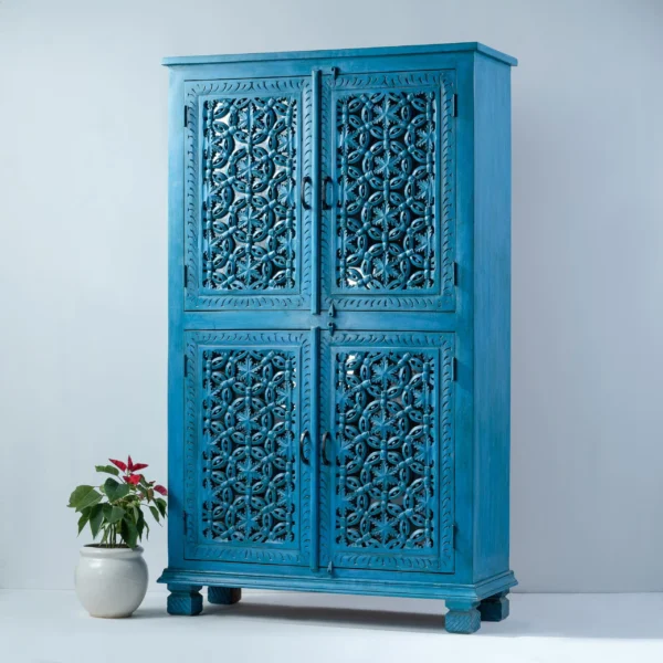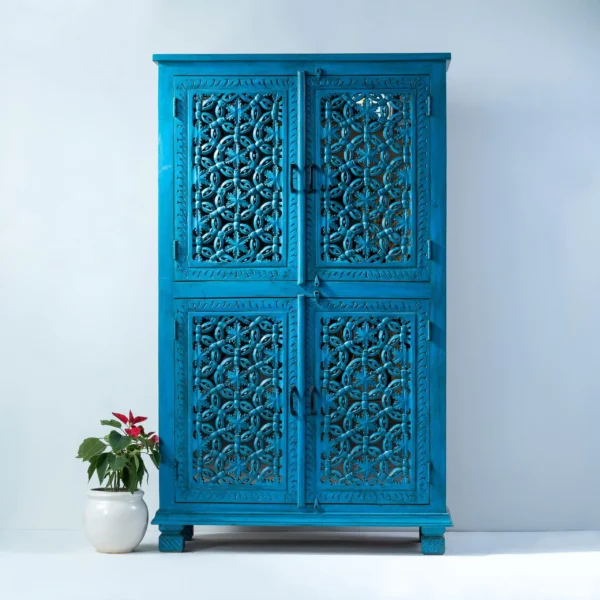 Original price was: $3,196.00.$2,876.00Current price is: $2,876.00.Hand Carved Jodhpur Blue Armoire