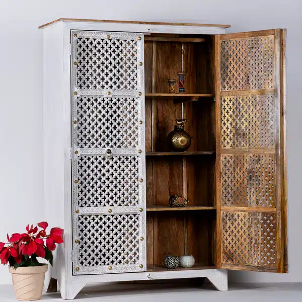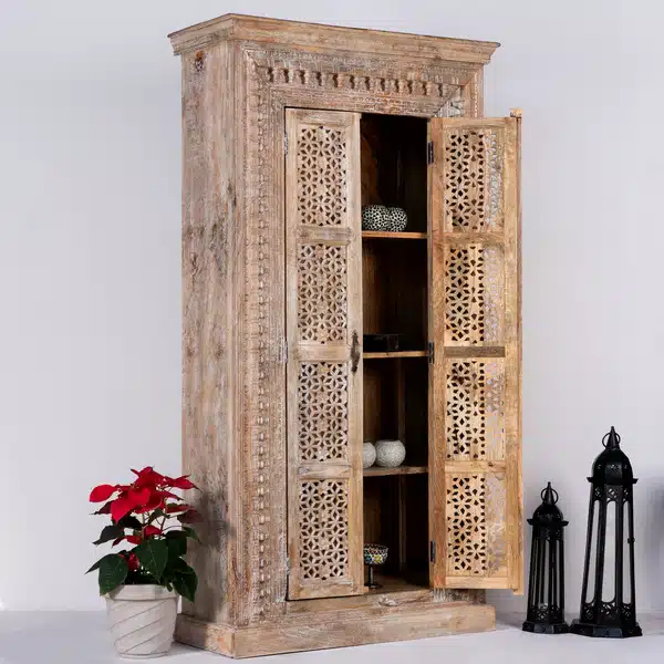 Our collection features a variety of sizes, designs, and finishes to complement different interiors. From classic wooden wardrobes with ornate carvings to sleek and minimalistic designs, we have something for everyone. The natural grain and texture of solid wood add an organic touch, making each wardrobe unique. Investing in a Homes of Rajasthan wardrobe means bringing home a piece of art that offers both functionality and unmatched charm.