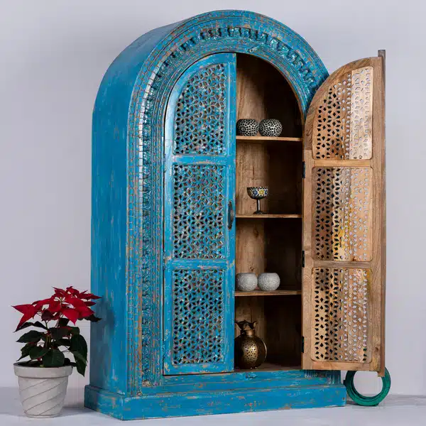 At Homes of Rajasthan, we take pride in offering furniture that reflects timeless craftsmanship. Our solid wood wardrobes not only enhance your bedroom aesthetics but also provide practical storage solutions. Designed to last for generations, each piece carries a story of skilled artisanship, bringing warmth and character to your home. Our hand-painted wardrobes showcase intricate detailing, making them a centerpiece in any room. If you appreciate eco-friendly furniture, our reclaimed wood wardrobes are a sustainable choice, combining heritage with modern appeal.