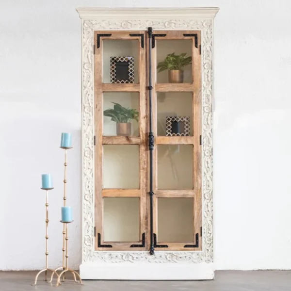 Our hand-carved collection showcases the rich heritage of Indian artistry. Each piece is meticulously crafted by skilled artisans, bringing intricate designs to life. For instance, the Hand Carved Indian Display and Crockery Unit in Natural Finish features detailed carvings of flora and fauna, making it a captivating centerpiece for your dining area. The natural wood finish adds warmth and character, ensuring that each unit is unique.