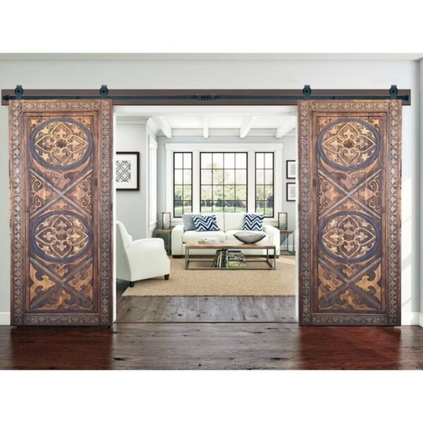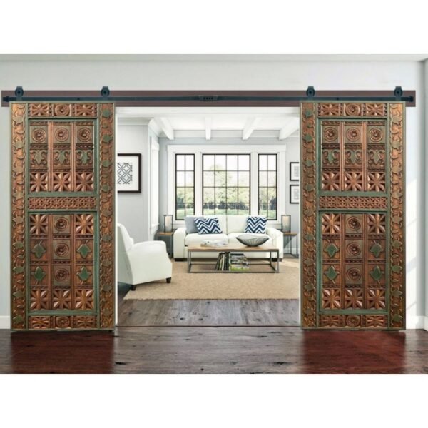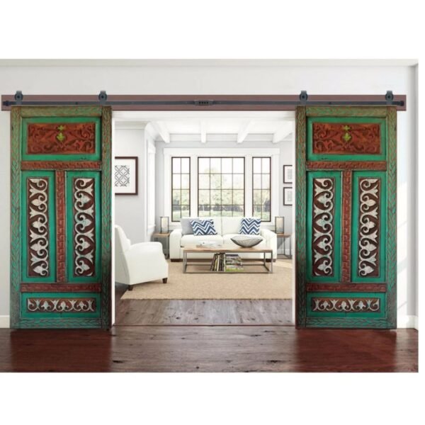 • We can create custom sizes and design unique hand-carved doors for your home interior. Including both sliding barn doors and hinged swinging regular doors for Livingroom, Bedroom, Bathroom, Kitchen, Pantry, Closet Doors, or Exterior Entrance Front Doors.