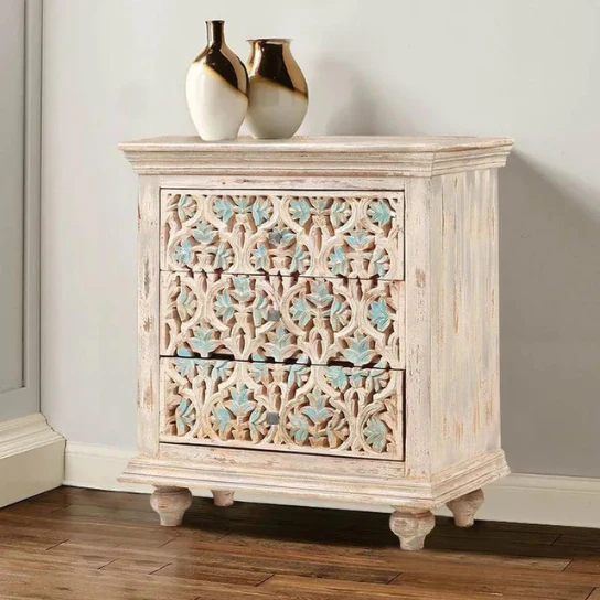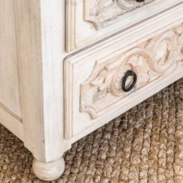 Original price was: $2,000.00.$1,800.00Current price is: $1,800.00.Hand Carved Floral Chest Of Drawers In White Finish