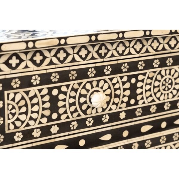 What sets our Bone Inlay Chest of Drawers apart is the blend of time-honored techniques and modern functionality. The intricate detailing, sturdy construction, and artistic appeal make them a valuable investment for any home. With proper care, these exquisite pieces can be cherished for generations, adding a unique cultural charm to your interiors.