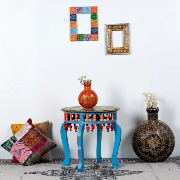 Original price was: $1,000.00.$900.00Current price is: $900.00.Hand Painted Indian Blue Wooden Stool End Table