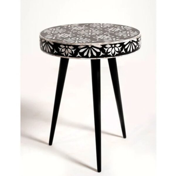 Bone Inlay Black Floral Motifs End Table: This end table features intricate black floral motifs set against a contrasting backdrop, making it a striking addition to any room.