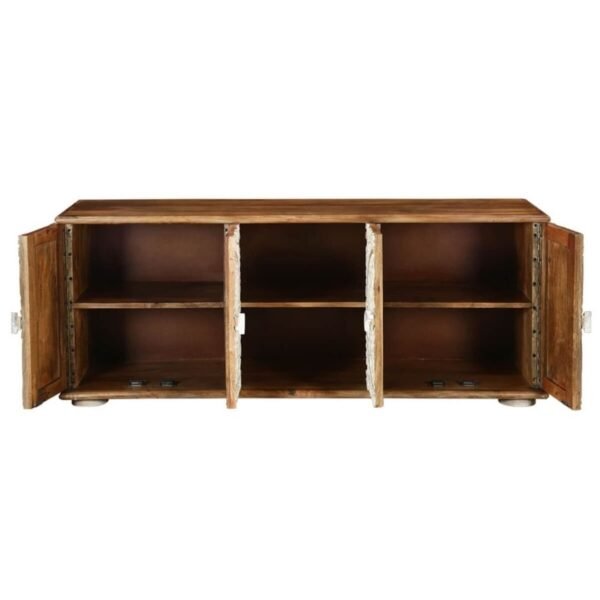Reclaimed Rustic Indian T.V. Unit: Crafted from reclaimed wood, this piece embodies sustainability and rustic charm. Each unit is unique, bearing the marks of its history, and adds character to your space.