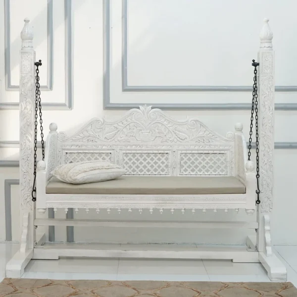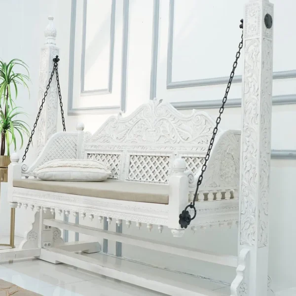Original price was: $7,222.00.$6,500.00Current price is: $6,500.00.Hand Carved White Finish Wooden Swing Chair