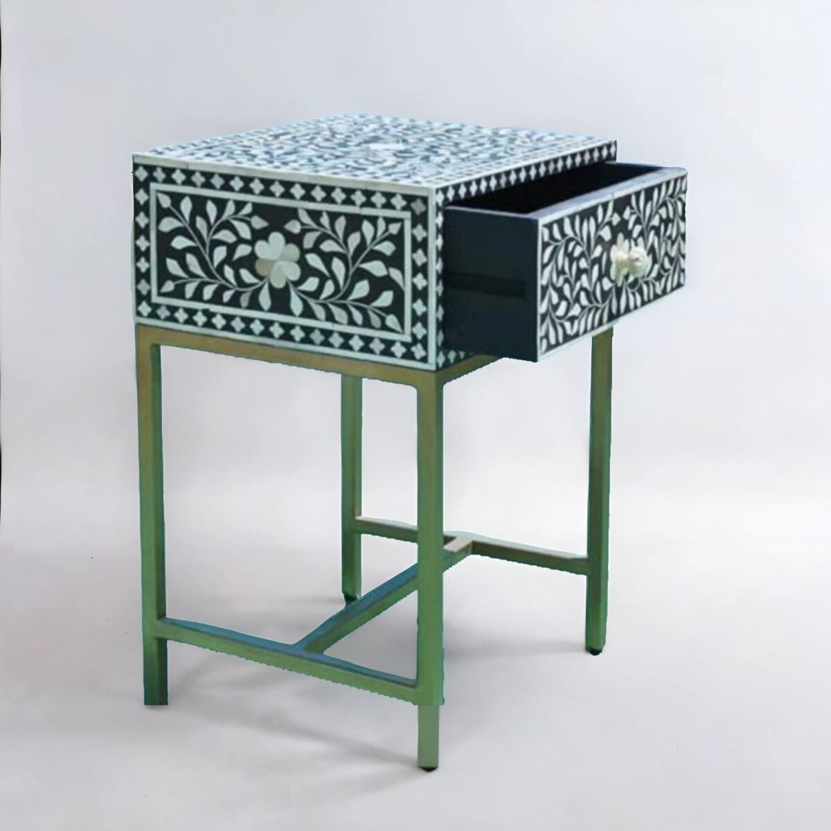 Be the first to review “Bone Inlay 1 Drawer Floral Bedside Table” Cancel reply
