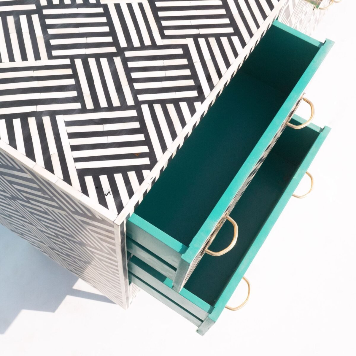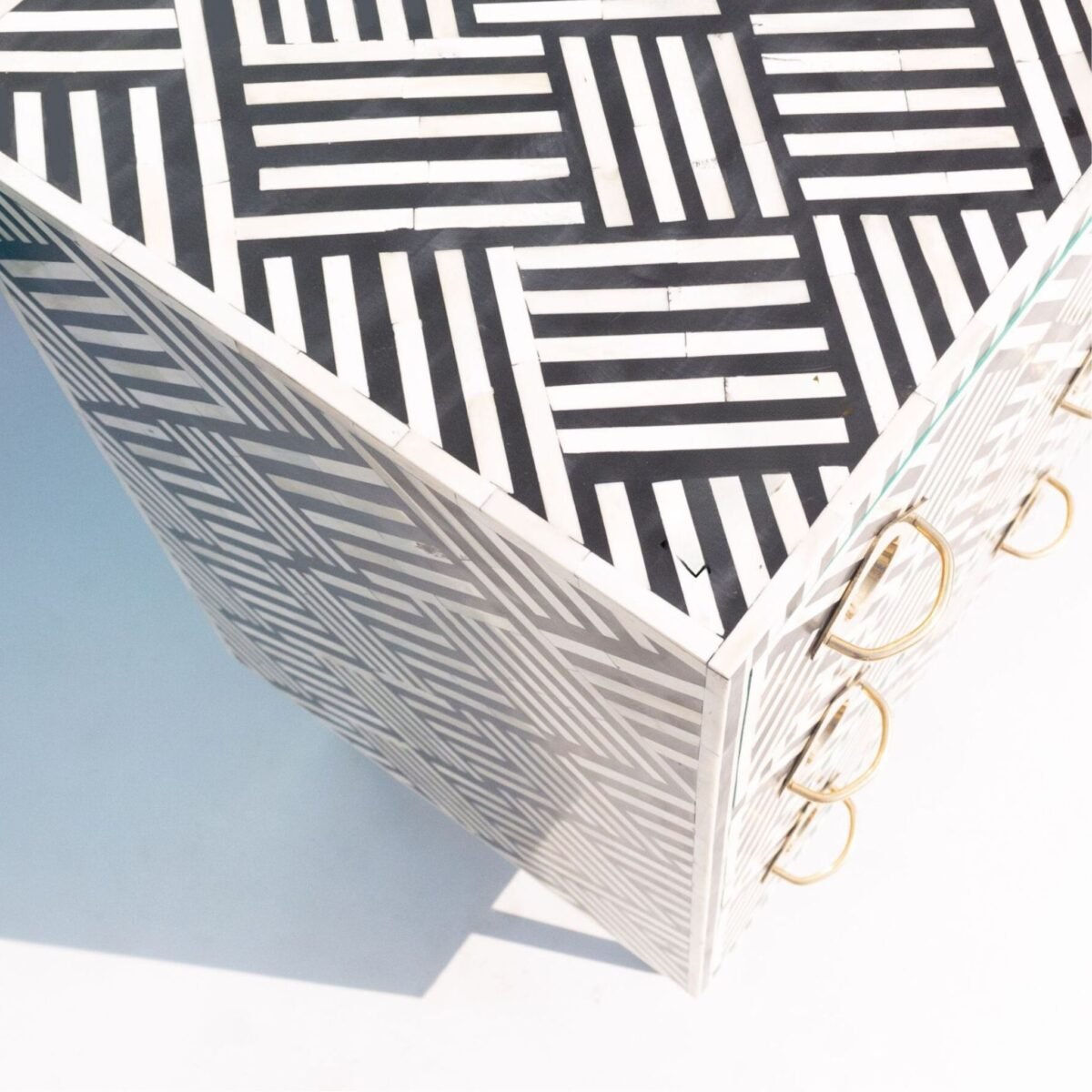 Bone Inlay Black -White Bedside Table