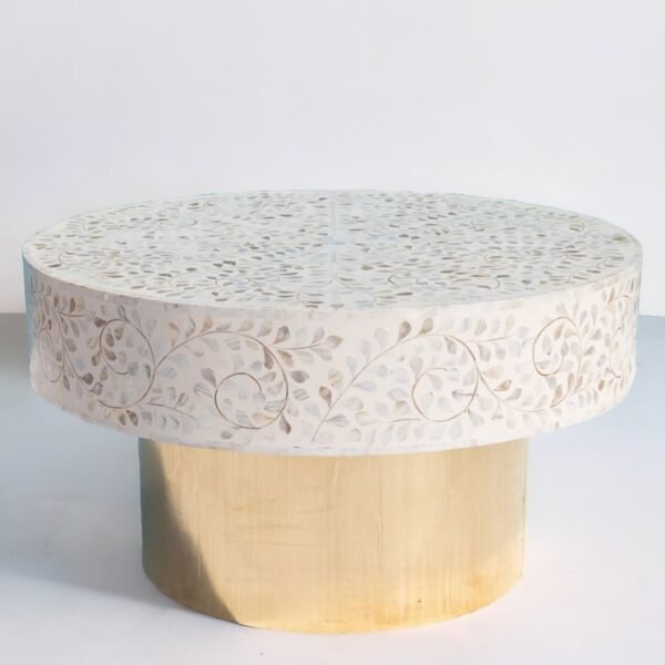 Originally, bone shards were arranged in simple, organic mosaic patterns. Over time, this technique evolved to encompass elaborate designs featuring geometric, floral, fish tail and herringbone arrangements. The gaps around the bone are filled with colored resin, resulting in a flawless surface.