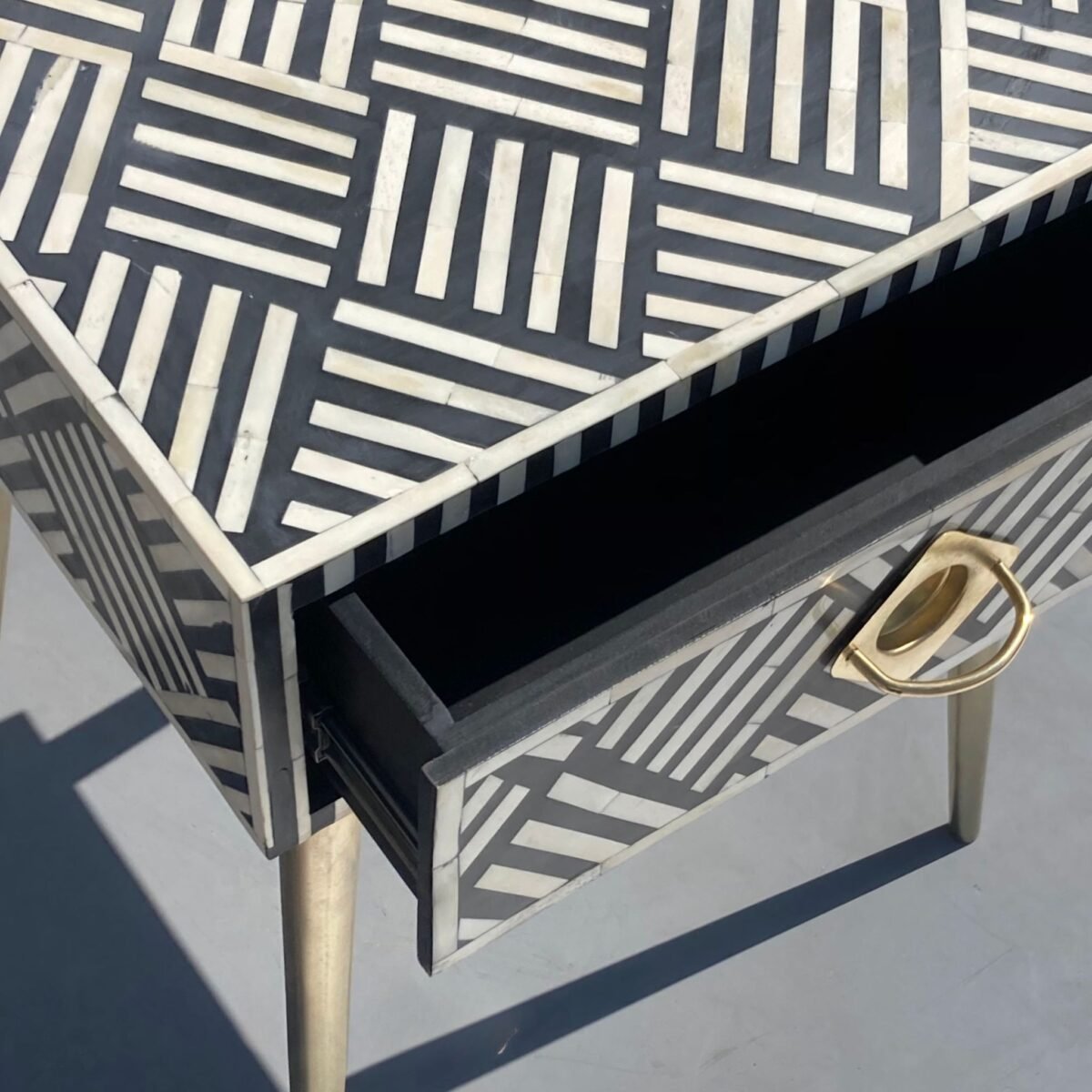 Be the first to review “Bone Inlay Black -White Bedside Table” Cancel reply