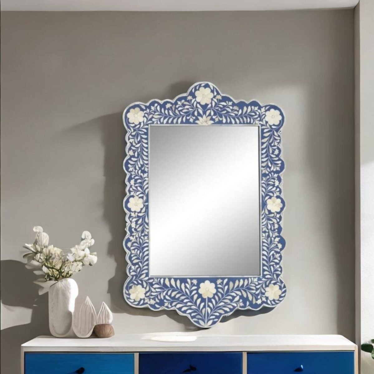 Bone Inlay Blue Mirror Frame