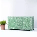 Bone Inlay Dark Green Floral Sideboard