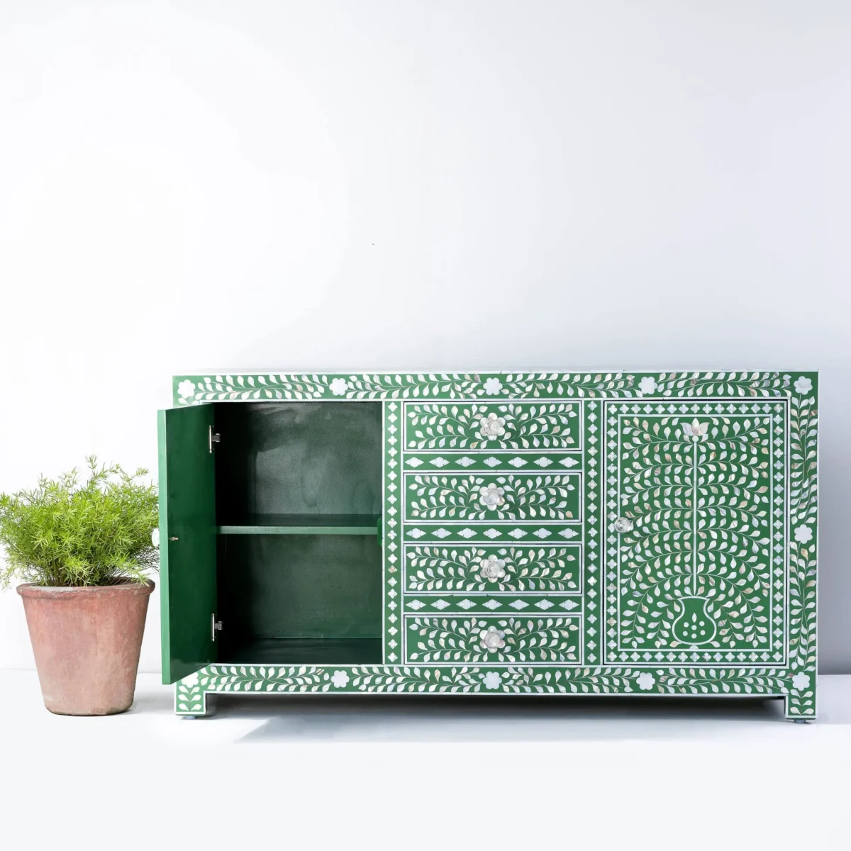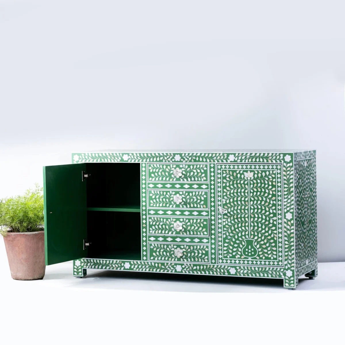 1 review for Bone Inlay Dark Green Floral Sideboard