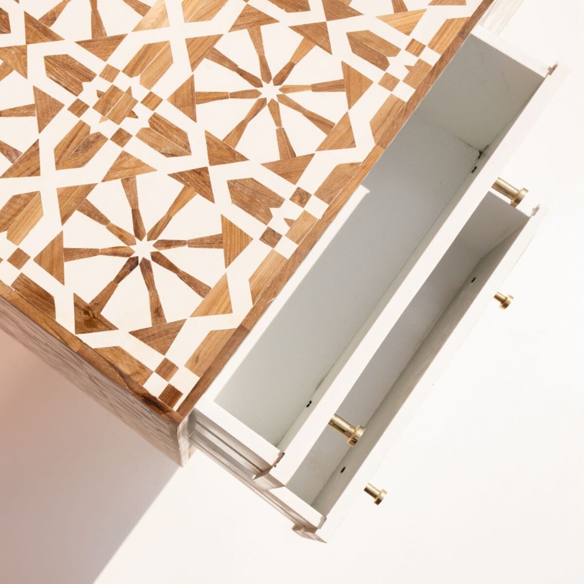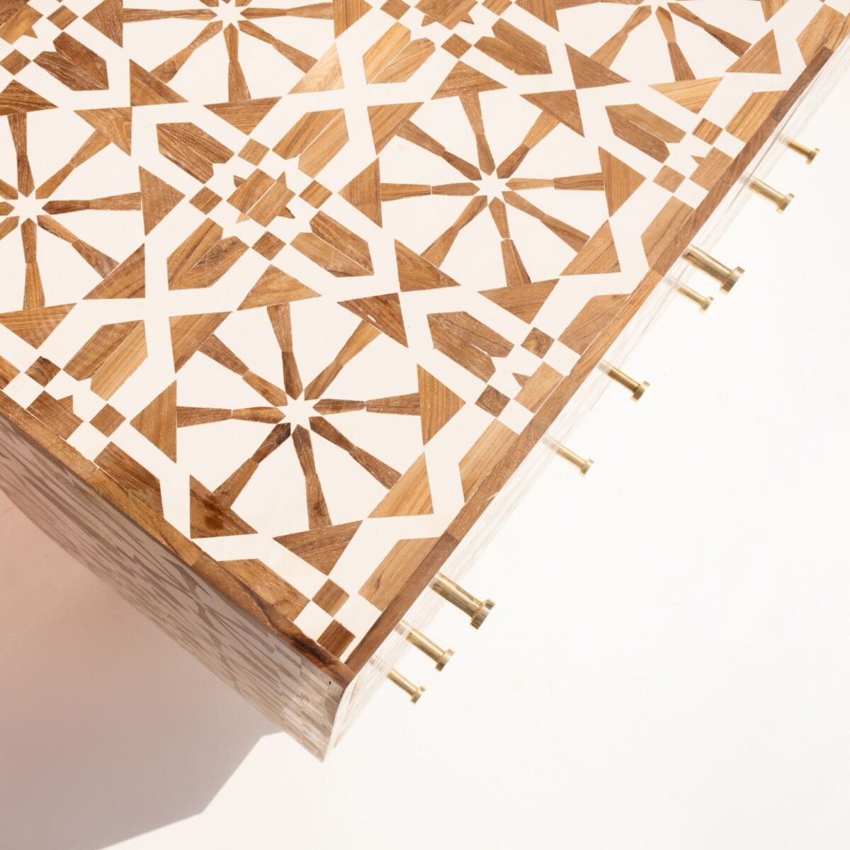 Bone inlay involves the meticulous craftsmanship of intricately carving bone pieces into small forms,which are then delicately inserted into the surfaces of various objects like furniture and homewares.