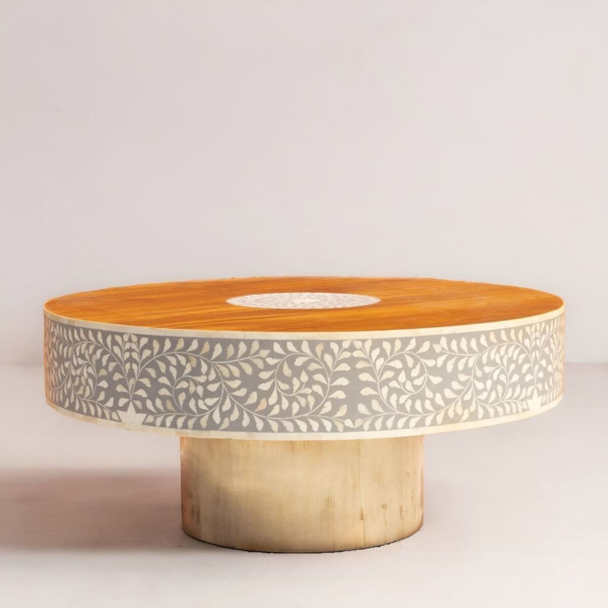 Bone Inlay White Round Coffee Table