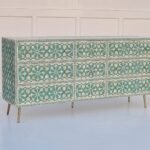 Bone Inlay Floral Pattern Green Sideboard