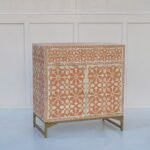 Bone Inlay Floral Pattern Orange Cabinet