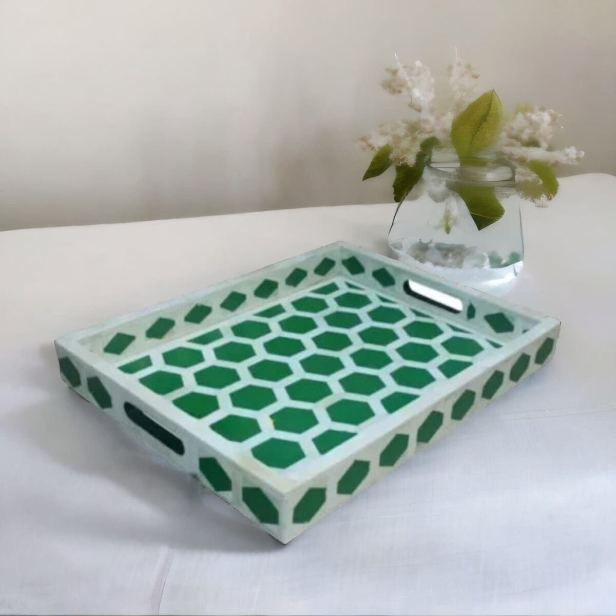 Be the first to review “Bone Inlay Green Honeycomb Serving Tray” Cancel reply