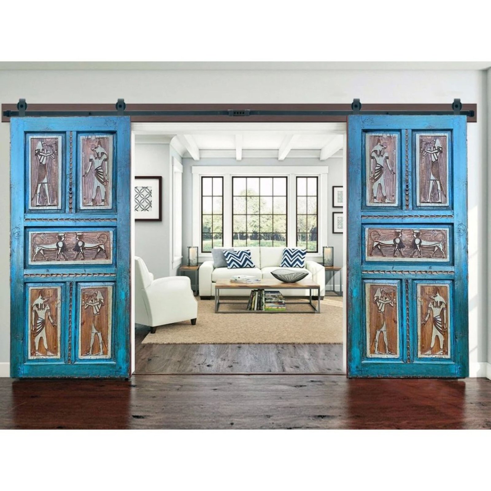 Hand Carved Blue Barn Door