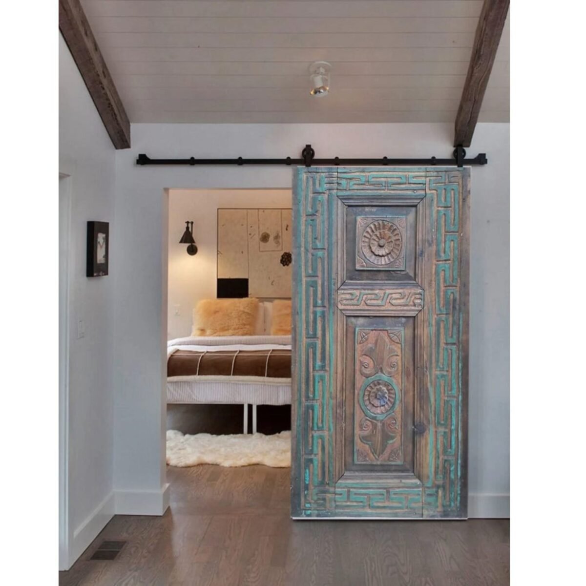 Hand Carved Blue Rustic Barn Door