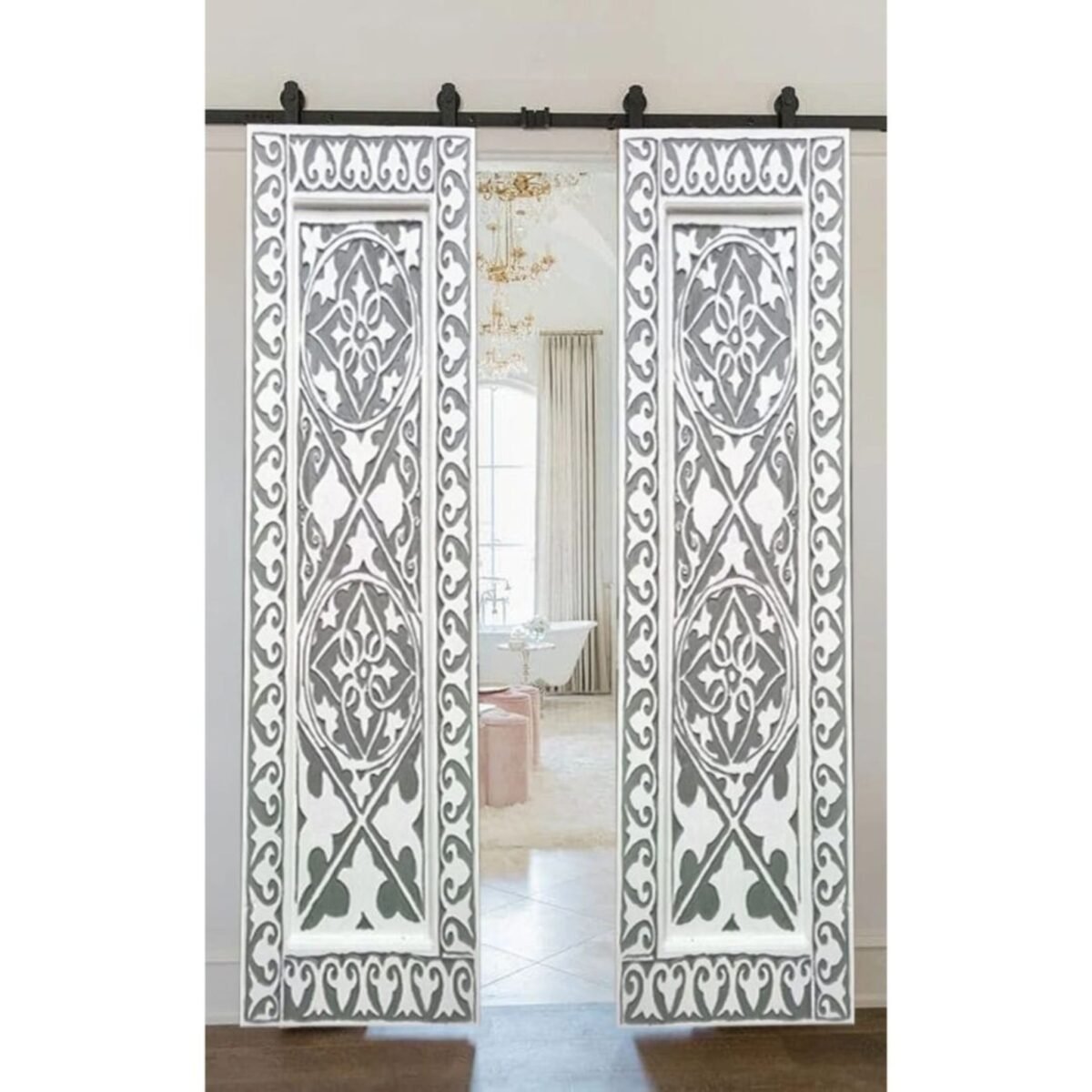 • We can create custom sizes and design unique hand-carved doors for your home interior. Including both sliding barn doors and hinged swinging regular doors for Livingroom, Bedroom, Bathroom, Kitchen, Pantry, Closet Doors, or Exterior Entrance Front Doors.
