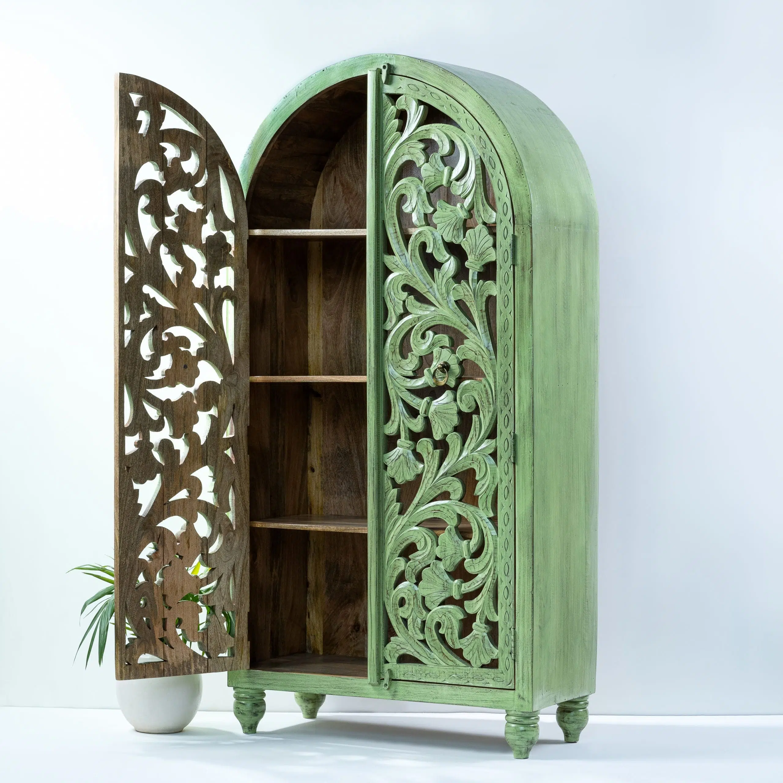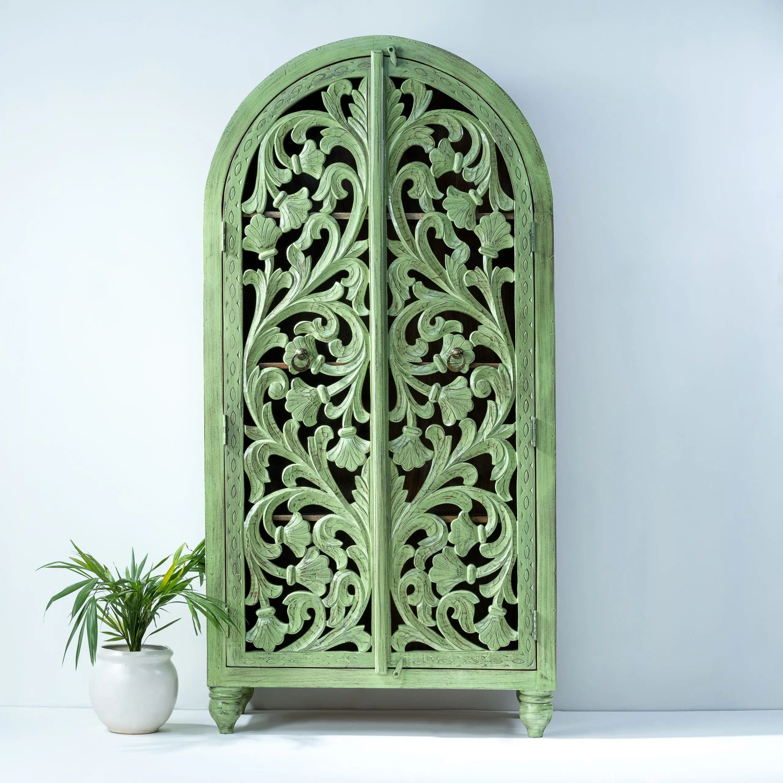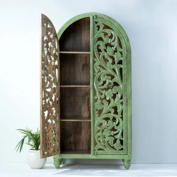Hand Carved Royal Green Dome Wardrobe