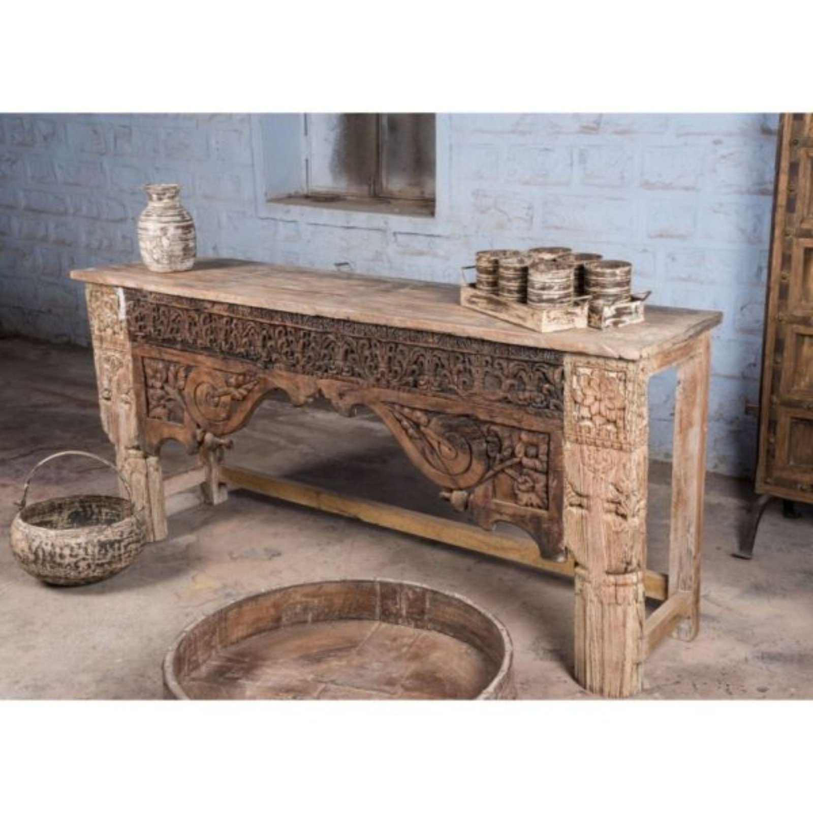 Hand Carved Indian White Console Table