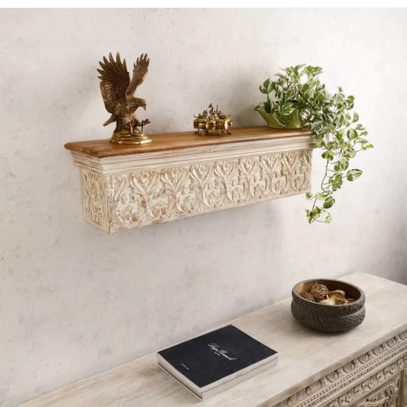 Hand Carved Wall Shelf In Oriental Style White