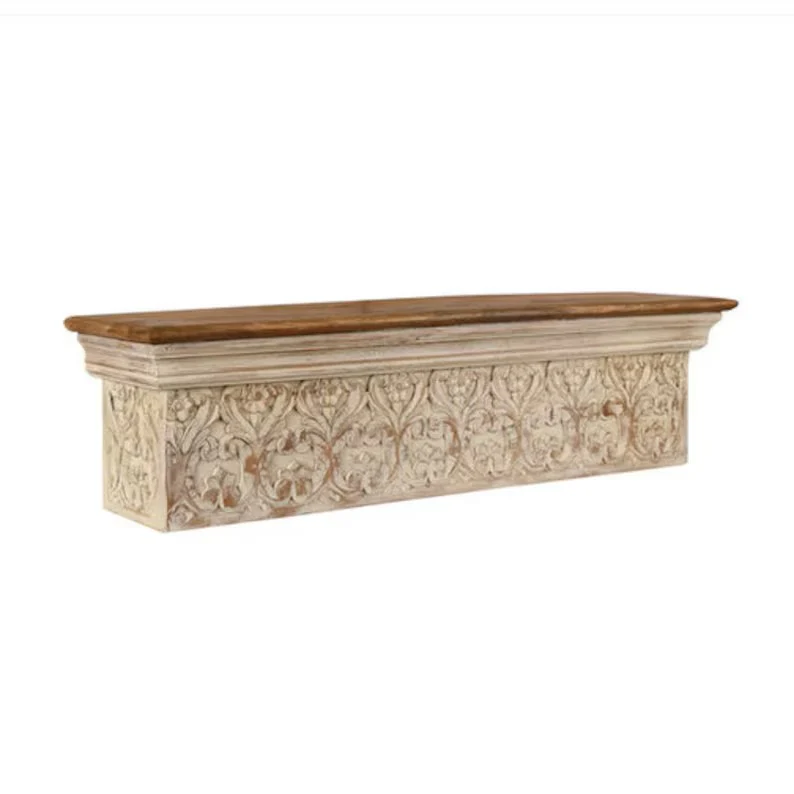 Hand Carved Brown Floating Wall Shelf
