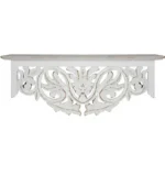 Hand Carved Whitewashed Floating Wall Shelf