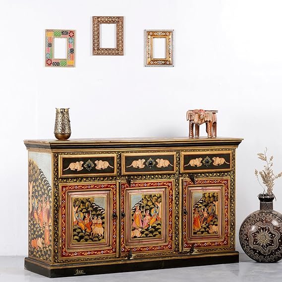 Bring handcrafted luxury to your home with our hand-painted furniture collection. Using wood, typically mango, as a base, this furniture is carefully crafted and then hand painted using vibrant colors to bring you an eclectic mix of luxury and cheerfulness. Paintings differ from royal depictions to valleys of flowers giving an edge to your décor. As our products are customized, you can put your own personal stamp to this high end luxurious, one-of-a-kind furniture.