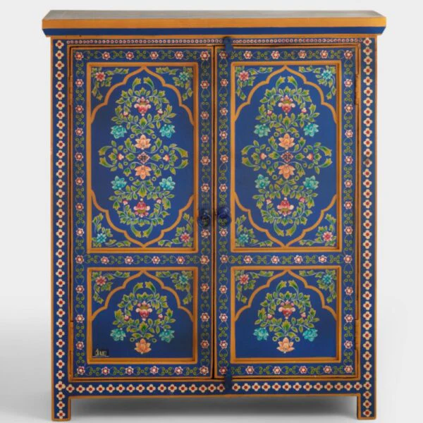 Hand Painted Indian Traditional Blue Multicolor Cabinet
