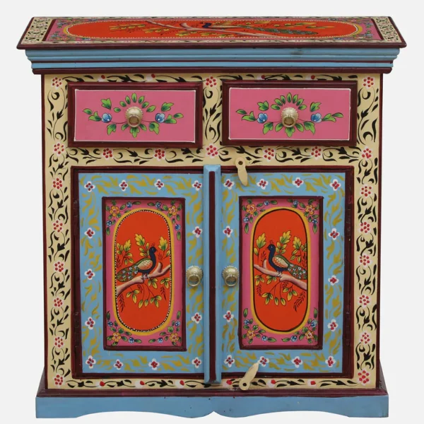 Bring handcrafted luxury to your home with our hand-painted furniture collection. Using wood, typically mango, as a base, this furniture is carefully crafted and then hand painted using vibrant colors to bring you an eclectic mix of luxury and cheerfulness. Paintings differ from royal depictions to valleys