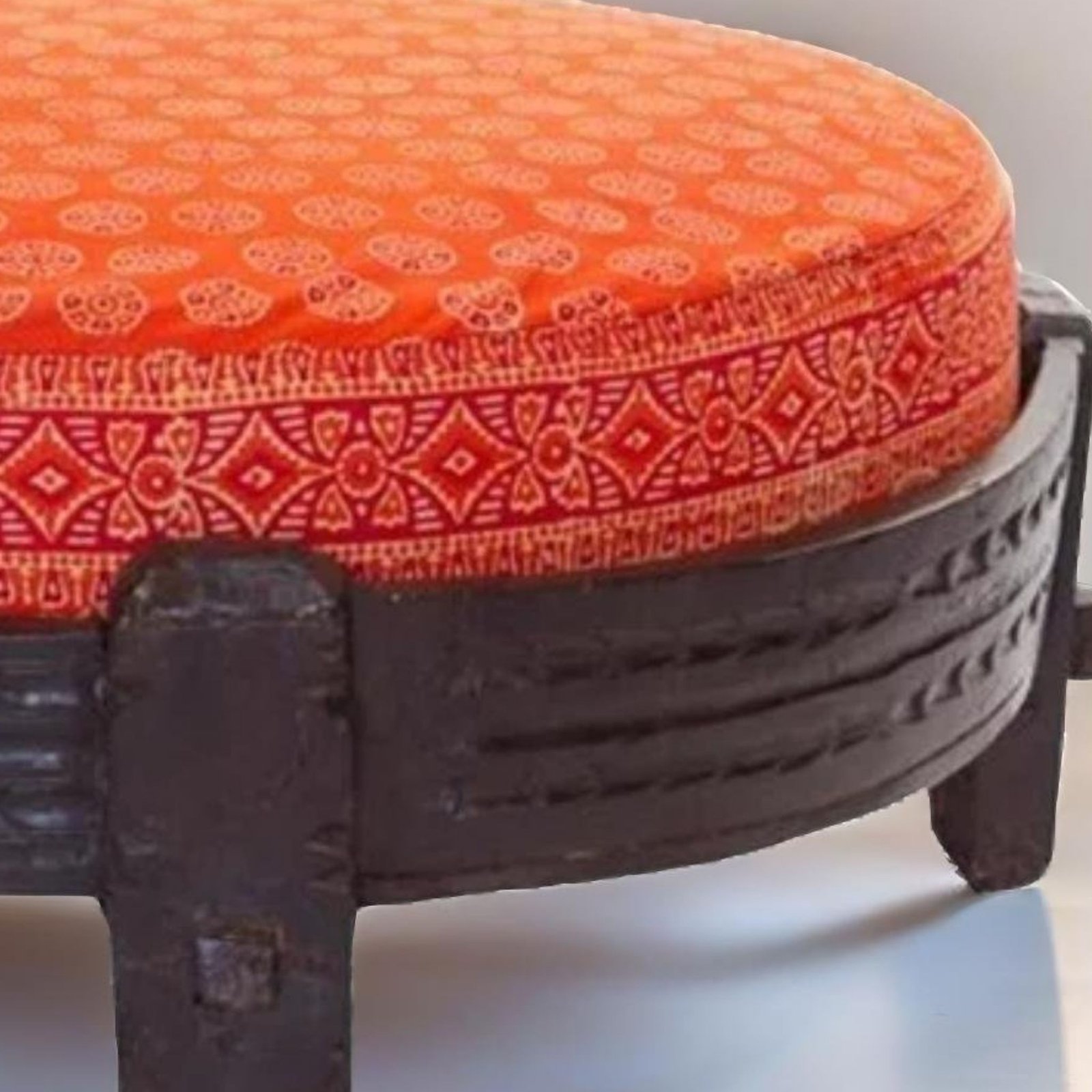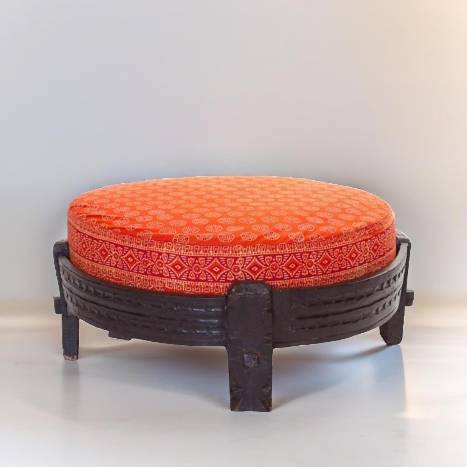 Traditional Indian Chakki Grinder Ottoman